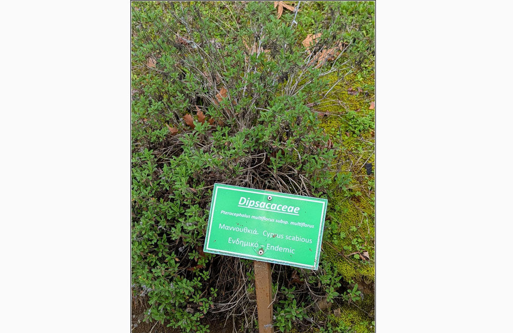 1. Πτεροκέφαλος ο πολυανθής, υποείδος ο πολυανθής (Pterocephalus multiflorus, ssp. multiflorus). Θαμνώδες φυτό που το ύψος του κυμαίνεται συνήθως μεταξύ 30 εκατοστών και ενός μέτρου, κάποτε και περισσότερο. Έχει τετραγωνικούς βλαστούς και είναι πολύκλαδο. Τα φύλλα απλά, με τρίχωμα, οδοντωτά, ελλειψοειδή, με μίσχο. Ανθίζει μεταξύ Μαΐου και Νοεμβρίου και δίνει άνθη μικρά, πολλά μαζί σε ημισφαιρικά κεφάλια, ρόδινου χρώματος. Ευδοκιμεί σε υψόμετρο μεταξύ 150 και 1.900 μέτρων, προτιμά δε ασβεστολιθικά και πυριγενή εδάφη, ξερές πλαγιές, αραιά πευκοδάση, ενώ απαντάται και κατά μήκος δρόμων. Ο καρπός είναι αχαίνιο. Το υποείδος αυτό είναι αρκετά κοινό στην οροσειρά του Τροόδους και σε μερικές περιοχές της επαρχίας Πάφου.