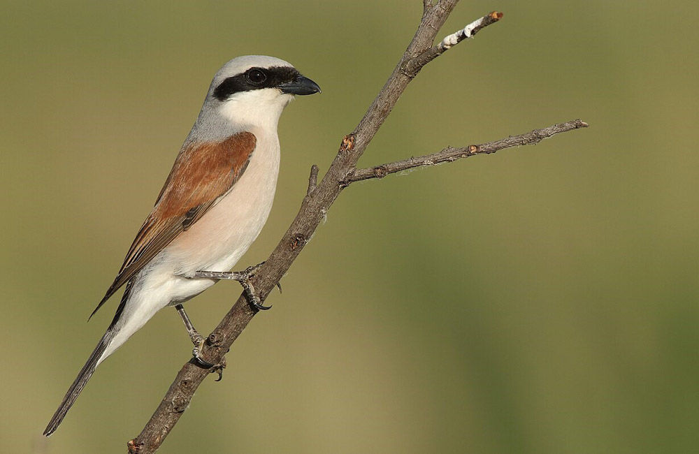 Lanius nubicus- παρδαλοκεφαλάς: Αρχίζει να έρχεται στην Κύπρο στα μέσα Μαρτίου και φεύγει στα μέσα Αυγούστου μέχρι και τα μέσα Σεπτεμβρίου. Είναι η πιο κοινή της οικογένειάς της στην Κύπρο, όπου έρχεται σε μεγάλους αριθμούς. Είναι από τα πιο χαριτωμένα πουλιά που έρχονται και γεννούν στην Κύπρο. Το χρώμα του αρσενικού είναι πολύ εντυπωσιακό: το πάνω μέρος του κορμού, από την κεφαλή μέχρι την ουρά, είναι γαλαζόμαυρο, με μια άσπρη ταινία που προεκτείνεται από το μέτωπο και ξεπερνά τα μάτια, σαν προσωπίδα. Λίγο άσπρο χρώμα υπάρχει και στις φτερούγες και στο άκρο της ουράς. Ο λαιμός και η κοιλιά είναι επίσης άσπρου χρώματος, ενώ το υπόλοιπο του κάτω μέρους του κορμού είναι τριανταφυλλί. Το χρώμα του θηλυκού είναι πιο ανοικτό και το άνω μέρος του κορμού του γκριζοκαφέ. Γεννά στα βουνά, και στις δυο οροσειρές της Κύπρου, κατά δε τον Αύγουστο, προτού φύγει, κατεβαίνει στις πεδιάδες. Κτίζει τη φωλιά του σε χαμηλά δέντρα και ψηλούς θάμνους και γεννά 4-7 αυγά γκρίζου χρώματος με καφέ στίγματα. Το μέγεθος του πουλιού αυτού είναι 17 εκατοστόμετρα εκ των οποίων τα μισά είναι η ουρά, γι' αυτό και μερικοί την ονομάζουν και μακρονούραν. Αρέσκεται να κάθεται στα εξωτερικά κλαδιά των δέντρων και να κουνά πάνω-κάτω την ουρά της. Μόλις δει κάποιο έντομο, ιδίως ακρίδες, ορμά κάθετα προς το έδαφος και το συλλαμβάνει.