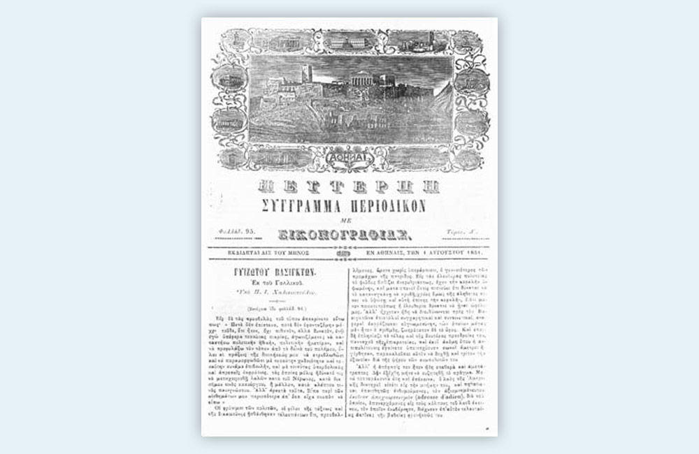 Αξίζει να σημειωθεί ότι με τον ίδιο τίτλο είχε κυκλοφορήσει στην Ελλάδα περιοδικό αρκετά χρόνια πριν την Κύπρο, το οποίο μάλιστα ήταν το πρώτο ελληνικό εικονογραφημένο περιοδικό και σημείωσε ιδιαίτερο σταθμό στην ιστορία της νεώτερης ελληνικής λογοτεχνίας. Κυκλοφόρησε την 1η Σεπτεμβρίου 1847 από τον Γρηγόριο Καμπούρογλου. Συνεργάτες ήταν σημαντικοί λόγιοι της εποχής, όπως ο Αλέξανδρος Ρίζος Ραγκαβής, ο Νικόλαος Λιβαδέας, ο Κωνσταντίνος Παπαρρηγόπουλος, ο Κωνσταντίνος Λεβίδης και άλλοι. Η Ευτέρπη έφερε σε επαφή το Ελληνικό κοινό με την Ευρωπαϊκή φιλολογική κίνηση. Ο τίτλος του από τον δεύτερο τόμο διακοσμήθηκε με ξυλογραφημένη απεικόνιση της Ακρόπολης. Στο περιεχόμενό του κυριαρχούσαν μεταφρασμένα μυθιστορήματα, διηγήματα, περιγραφές τόπων, ταξιδιών, εξερευνήσεων μακρινών χωρών, βιογραφίες διάσημων ανθρώπων, εγκυκλοπαιδικές γνώσεις από την φυσική, αστρονομία, αρχαιολογία και άλλες επιστήμες.