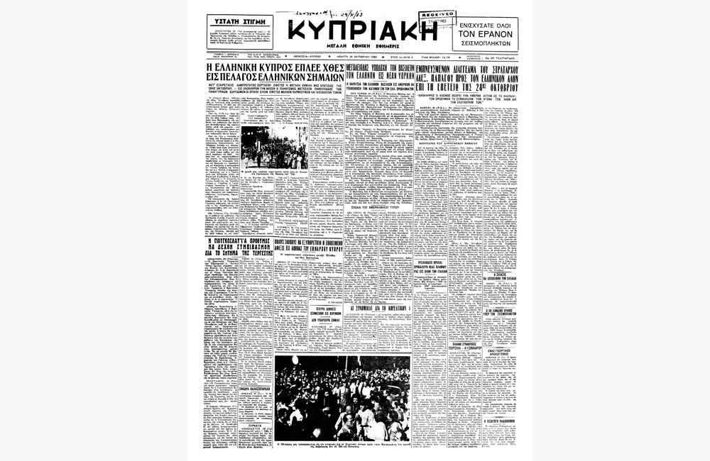 Το πρώτο φύλλο της Κυπριακῆς ήταν εξασέλιδο πανηγυρικό με πλούσια ειδησεογραφία και σχολιογραφία. Ειδικές στήλες αφιερώνονται στην εθνική επέτειο της 28ης Οκτωβρίου. Η πρώτη σελίδα του πρώτου φύλλου καταλαμβάνεται σχεδόν εξ ολοκλήρου από ευχές και χαιρετιστήρια μηνύματα από διάφορες προσωπικότητες της Ελλάδας και της Κύπρου με την ευκαιρία της έκδοσης της εφημερίδας.