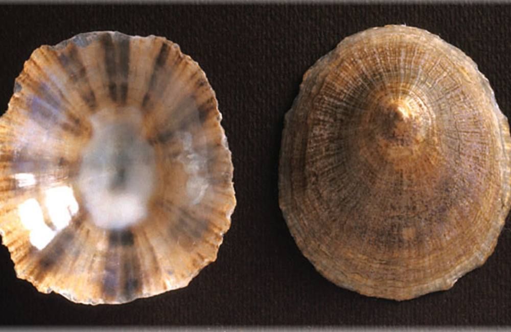 α) Patella coerulea, Linnaeus. Αγγλική ονομασία: Mediterranean limpet. Μήκος οστράκου περίπου 4,5 εκ.